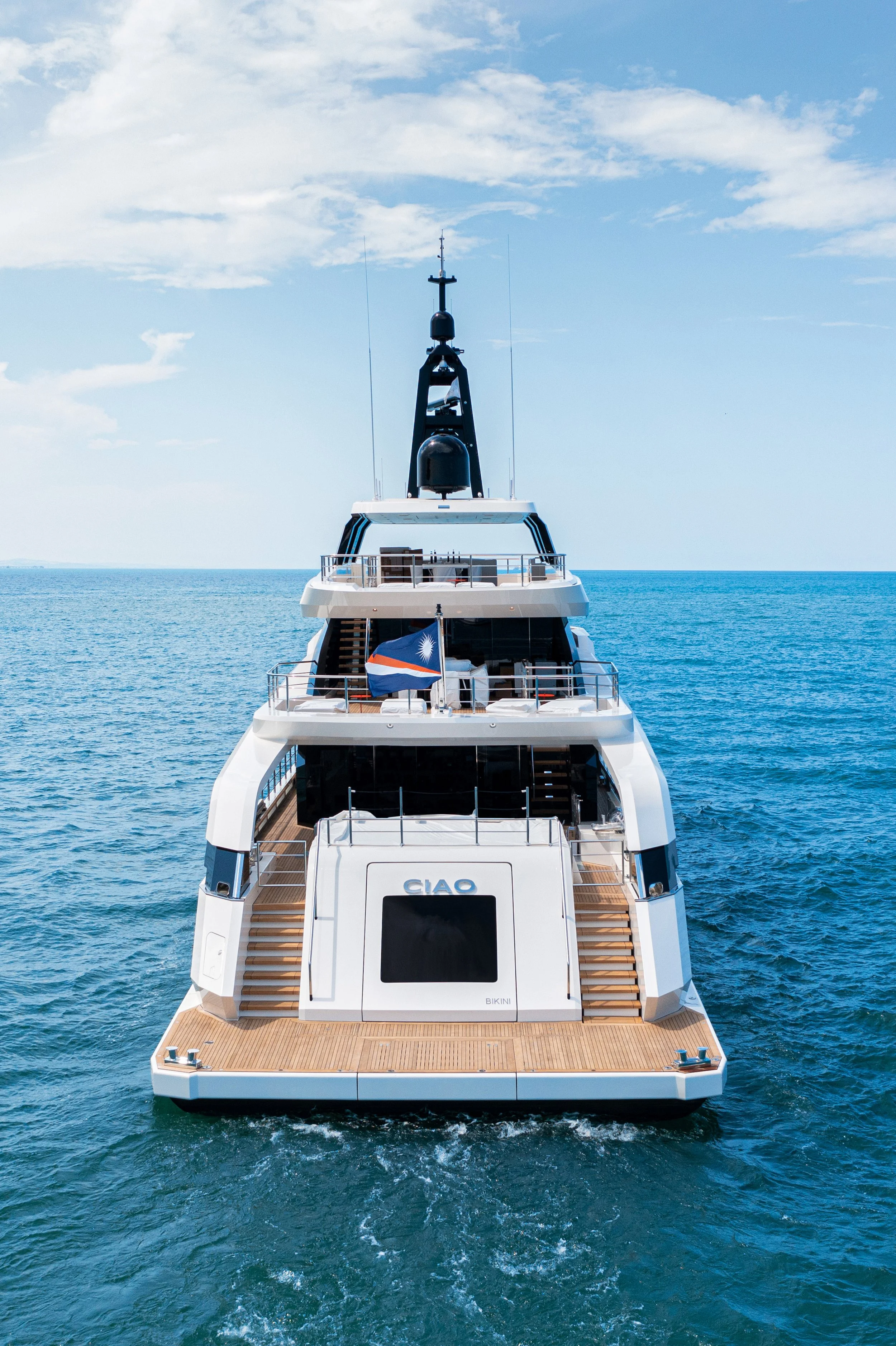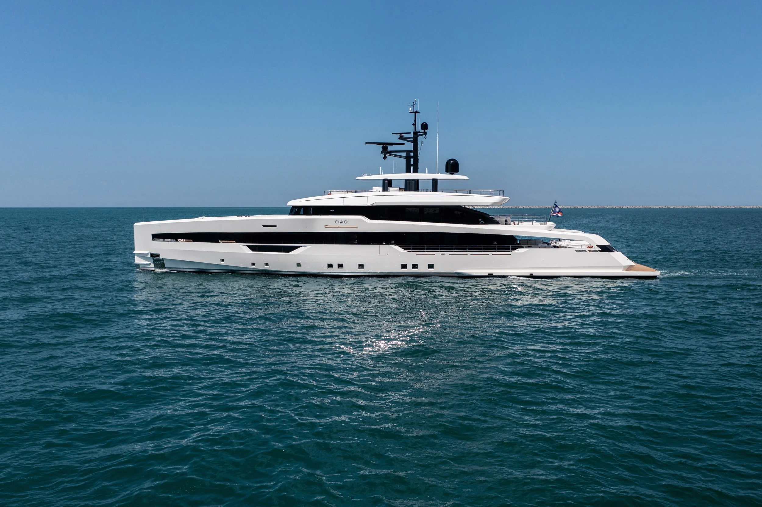 The all-aluminium M/Y CIAO has been designed and built by CRN in close collaboration with architecture and design studio Omega Architects, who conceived the external lines, and architects Massari Design, who created the outdoor guest areas and interiors.